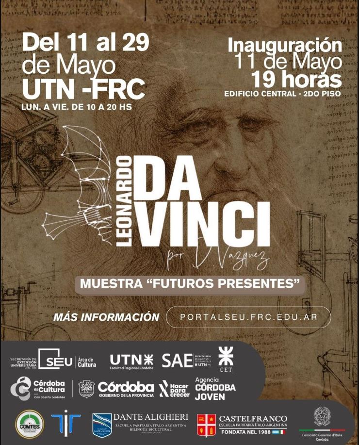 De la mano del Ing. Daniel Vázquez, llega a nuestra Facultad la muestra “Futuros Presentes”, a través de la cual se podrán apreciar y descubrir las réplicas de 40 máquinas diseñadas por el genio de Da Vinci. Quienes recorran esta muestra interactiva, podrán descubrir los principios detrás de cada invención, además de conocer ideas y bocetos. La muestra se inaugurará el 11 de mayo a las 19 hs., en el segundo piso del Edificio Central. Se podrá visitar hasta el 29 de mayo, de 10 a 20 hs., con entrada libre y gratuita; y se ofrecerán visitas guiadas con inscripción previa. Más información