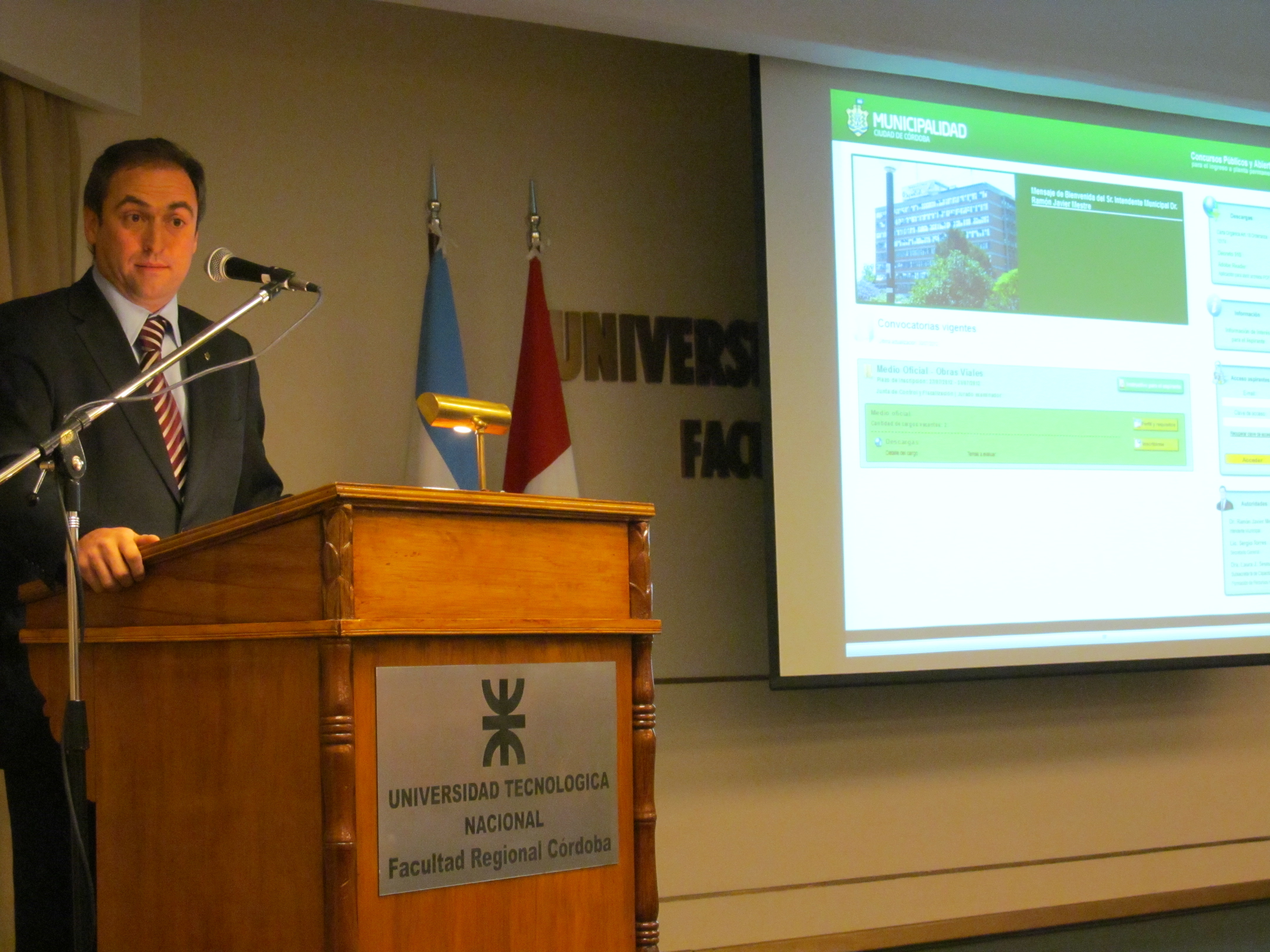 El lunes 30 de julio, en el Salón de Actos de nuestra Facultad, tuvo lugar la presentación del Portal Web de los concursos públicos y abiertos para el ingreso a la Municipalidad de Córdoba, desarrollado por el Departamento de Ingeniería en Sistemas de Información de esta Casa de Estudios. En el evento estuvieron presentes el Sr. Decano, Ing. Héctor Aiassa y el Sr. Intendente de la Municipalidad de Córdoba, Dr. Ramón Mestre, entre otras autoridades. Durante el acto se dio a conocer públicamente el funcionamiento del portal, el cual constituye una herramienta inédita que permite la inscripción masiva de los postulantes garantizando la trasparencia y celeridad del proceso concursal.