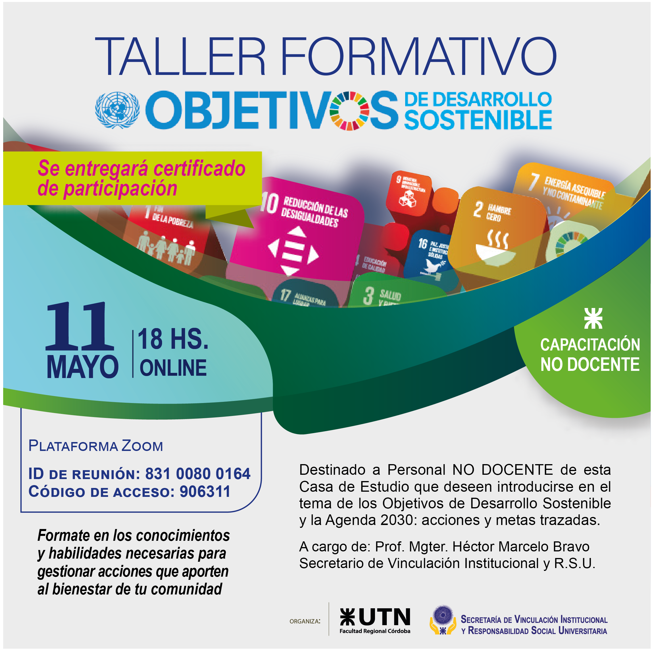 Más información e Inscripciones: Secretaría de Vinculación Institucional y RSU Taller Formativo en ODS para Personal No Docente