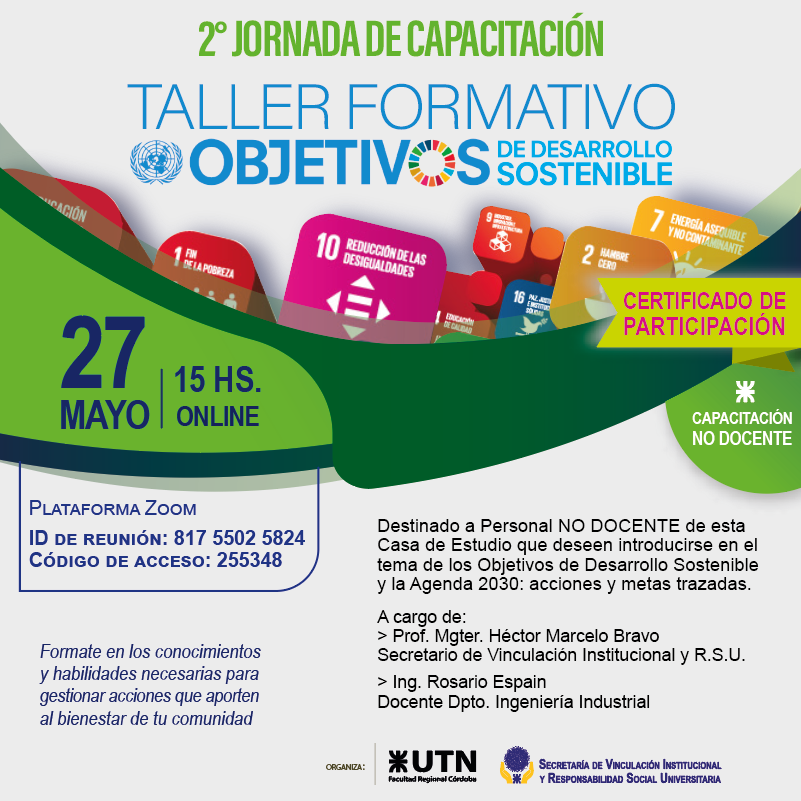 Hasta el 28 de mayo, la Asociación Vocacional de Estudiantes e Ingenieros Tecnológicos (AVEIT) mantendrá abiertas las inscripciones para aquellos estudiantes que se encuentren cursando hasta 4° año de cualquiera de las especialidades de Ingeniería, para poder formar parte de esta Asociación Estudiantil. Esta experiencia ofrece formación académica, amistad, desarrollo de diversas actividades y la culminación con el Tradicional Viaje Técnico – Cultura a Europa, al finalizar la Carrera. Más información Secretaría de Vinculación Institucional y RSU 2º Taller Formativo en ODS para No Docentes