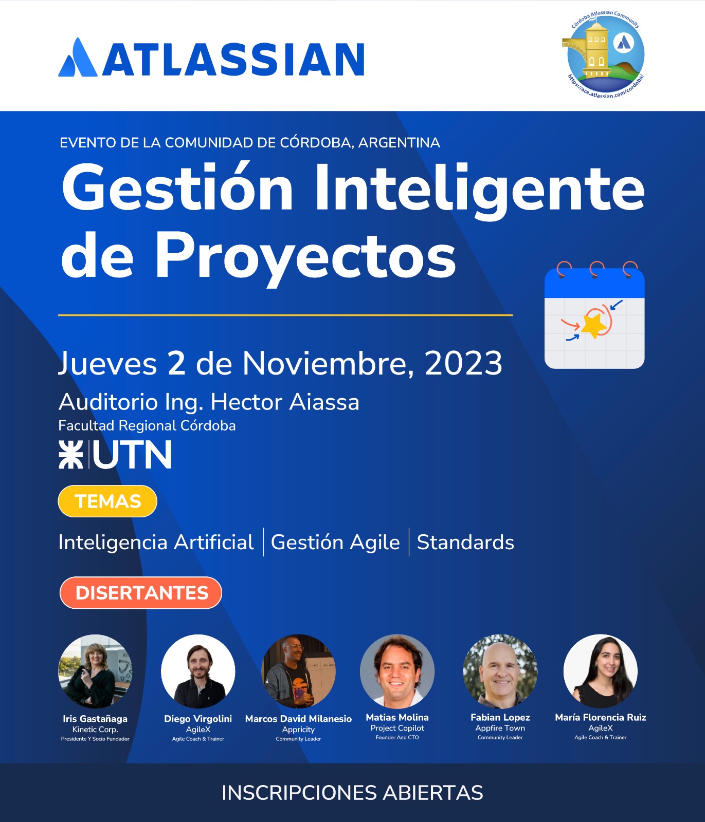 El jueves 2 de noviembre, de 16 a 21 hs. en el Auditorio de nuestra Facultad, se desarrollará el evento “Gestión Inteligente de Proyectos”. Organizado junto con la empresa Atlassian, el evento propone como objetivo elevar proyectos de software a nuevos niveles de eficiencia. Los disertantes recorrerán un temario sobre diferentes ejes, tales como Gestión Agile, Inteligencia Artificial, Standars. El evento es gratuito y requiere inscripción previa. Más información e inscripciones