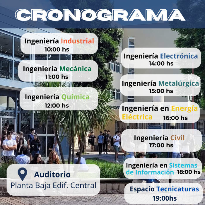 Hasta el 7 de diciembre de 2023, inclusive, estarán abiertas las Preinscripciones para el INGRESO 2024 a todas las Carreras de INGENIERÍA, en las siguientes especialidades: Civil, Eléctrica, Electrónica, Industrial, Mecánica, Metalúrgica, Química y Sistemas de Información. El Seminario Universitario se compone de tres materias: Introducción a la Universidad, Matemáticas y Física; la cuales deberán ser aprobadas para cursar la carrera de Ingeniería elegida. Los exámenes y recuperatorios serán presenciales. Trámite para Ingresantes por Equivalencias 2024 - Eximición al Seminario Universitario 2024 - Aspirantes mayores de 25 años, sin Título de Nivel Secundario - Más información y preinscripciones