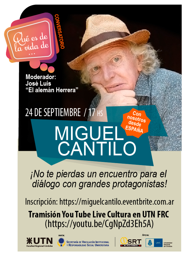Este conversatorio se llevará a cabo el día jueves 24 de septiembre a las 17 hs. y será transmitido a través de nuestro Canal de Cultura, Cultura en UTN FRC